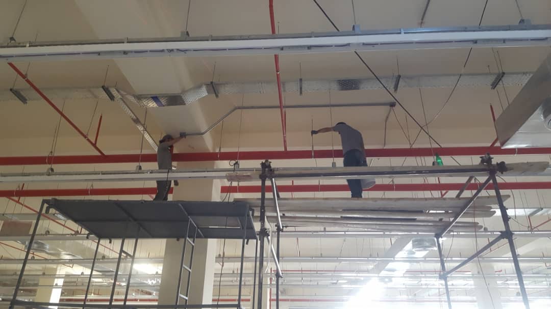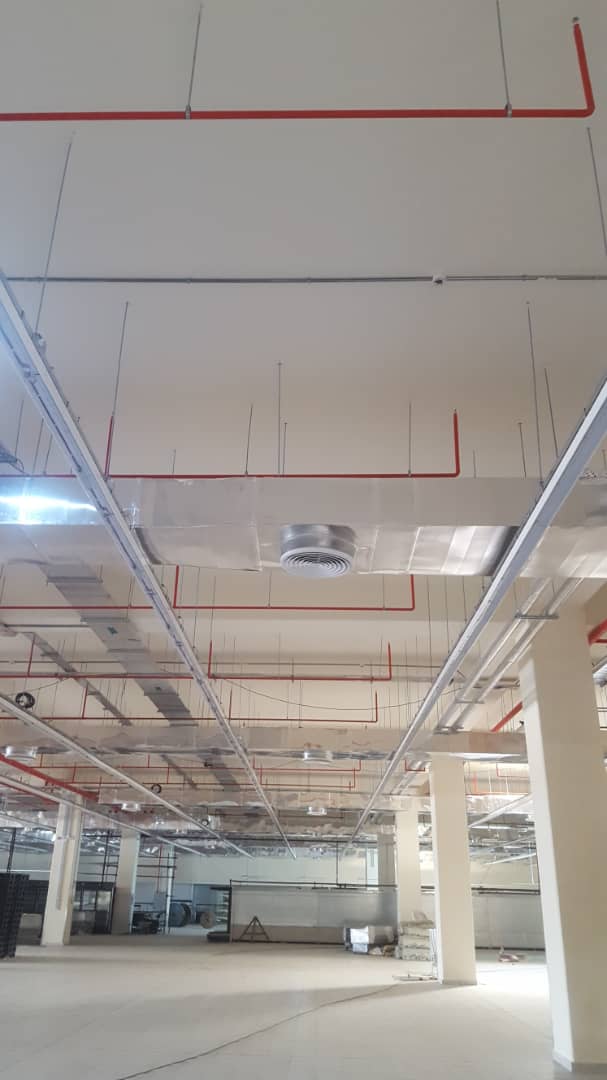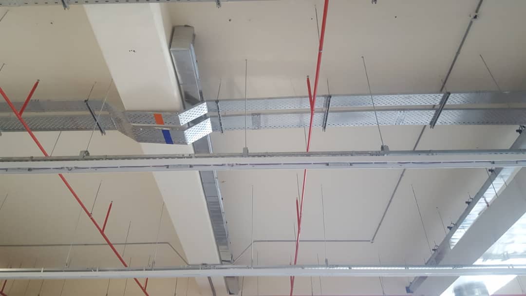 • اجرای زیرساخت و نصب سیستم اعلان حریق آدرس‌پذیر هوشمند پروژه برای فضاهای اداری و سالن اصلی.